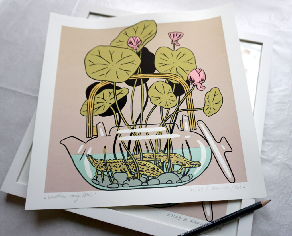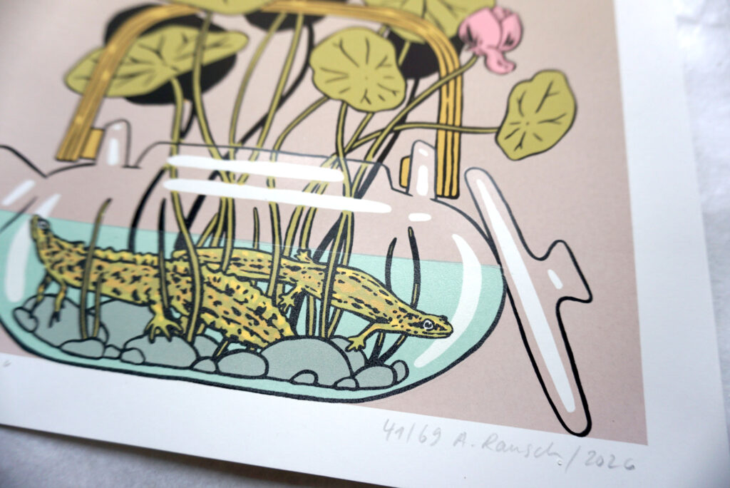 „Water my soul“ ist in einer limitierten Auflage von 69 Exemplaren im Siebdruck angefertigt. Der Siebenfarbige Druck ist auf cremefarbenes 240 g schweres Naturpapier gedruckt. Jede Grafik ist 30 cm hoch und 30 cm breit, signiert und nummeriert.