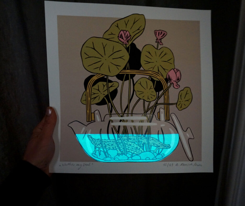 „Water my soul“ ist in einer limitierten Auflage von 69 Exemplaren im Siebdruck angefertigt. Der Siebenfarbige Druck ist auf 240 g schweres Naturpapier gedruckt. Jede Grafik ist 30 cm hoch und breit, signiert und nummeriert.